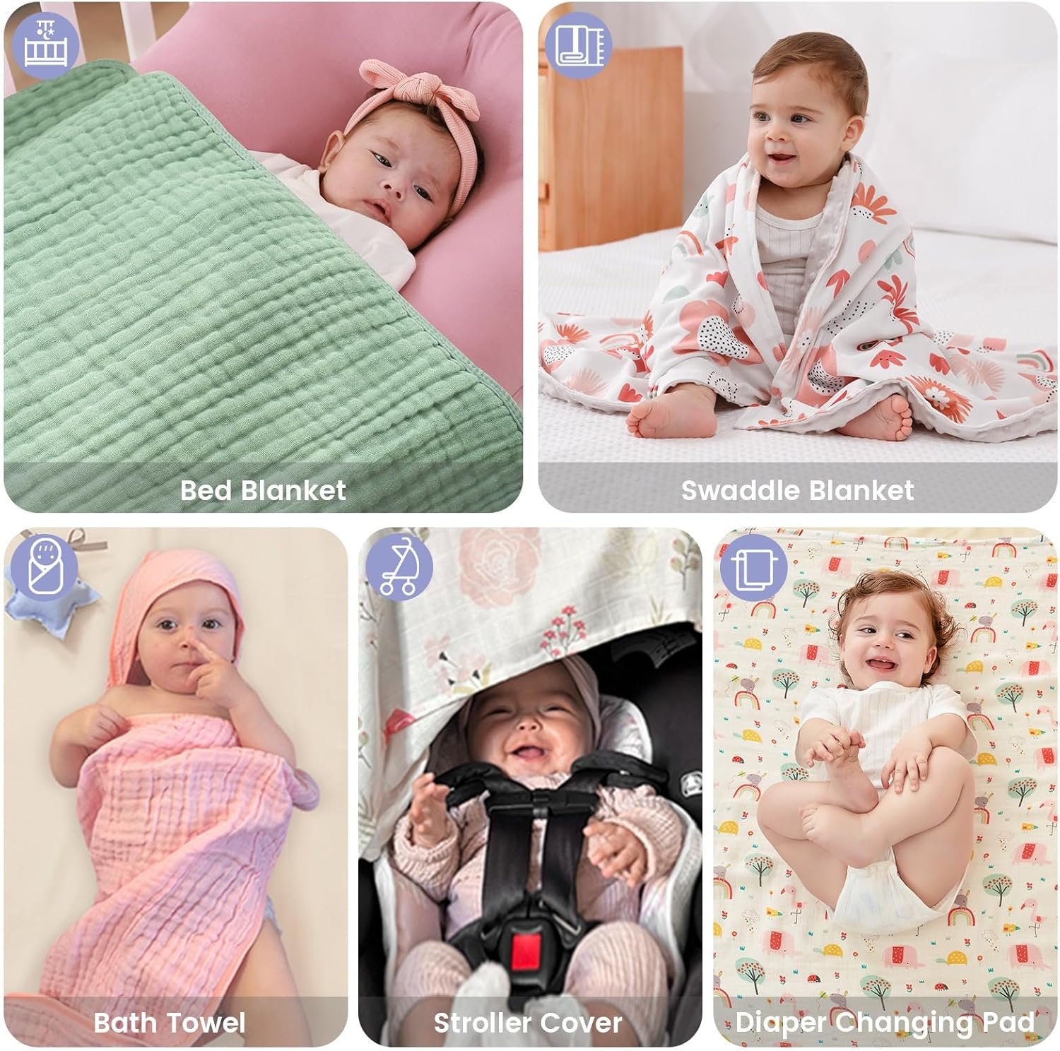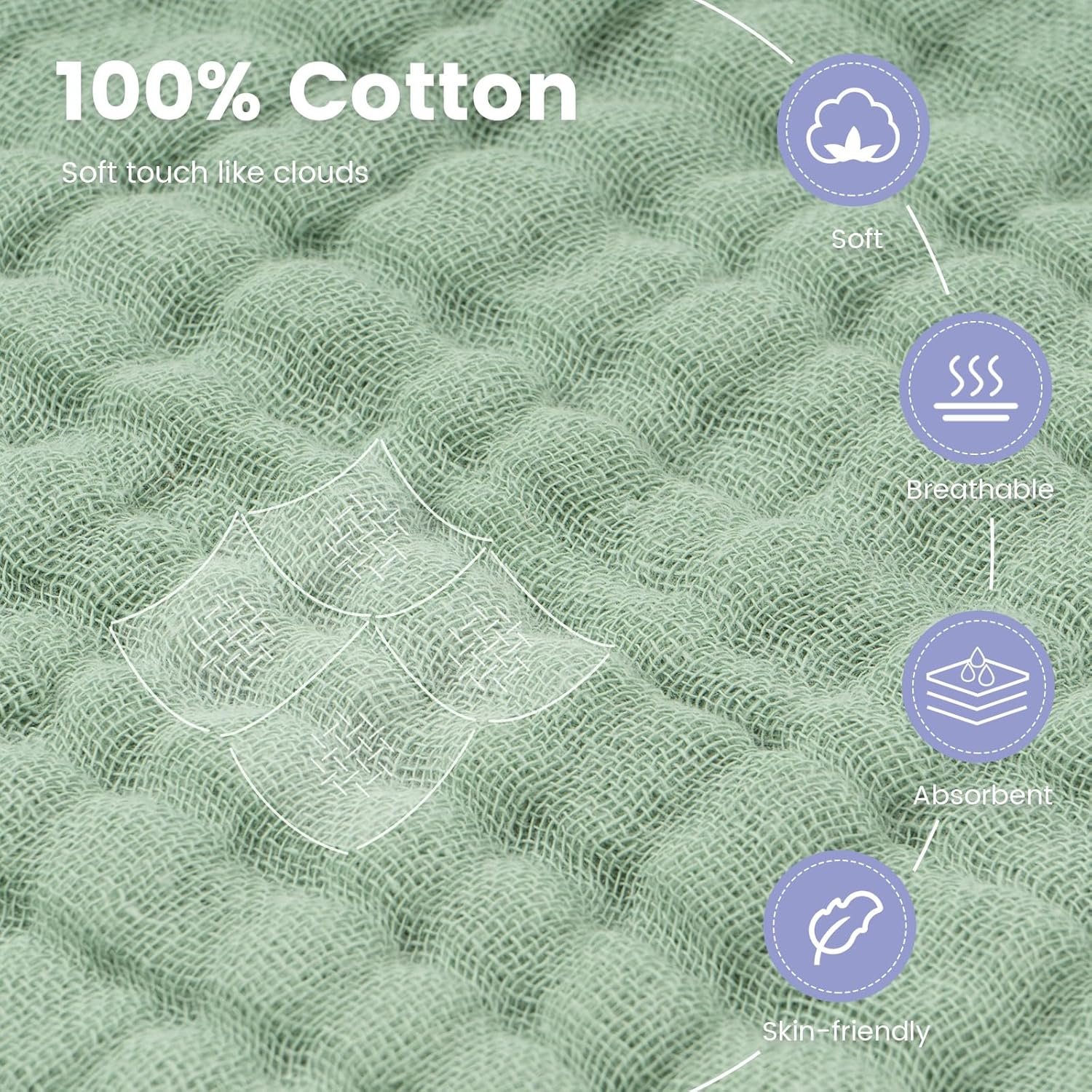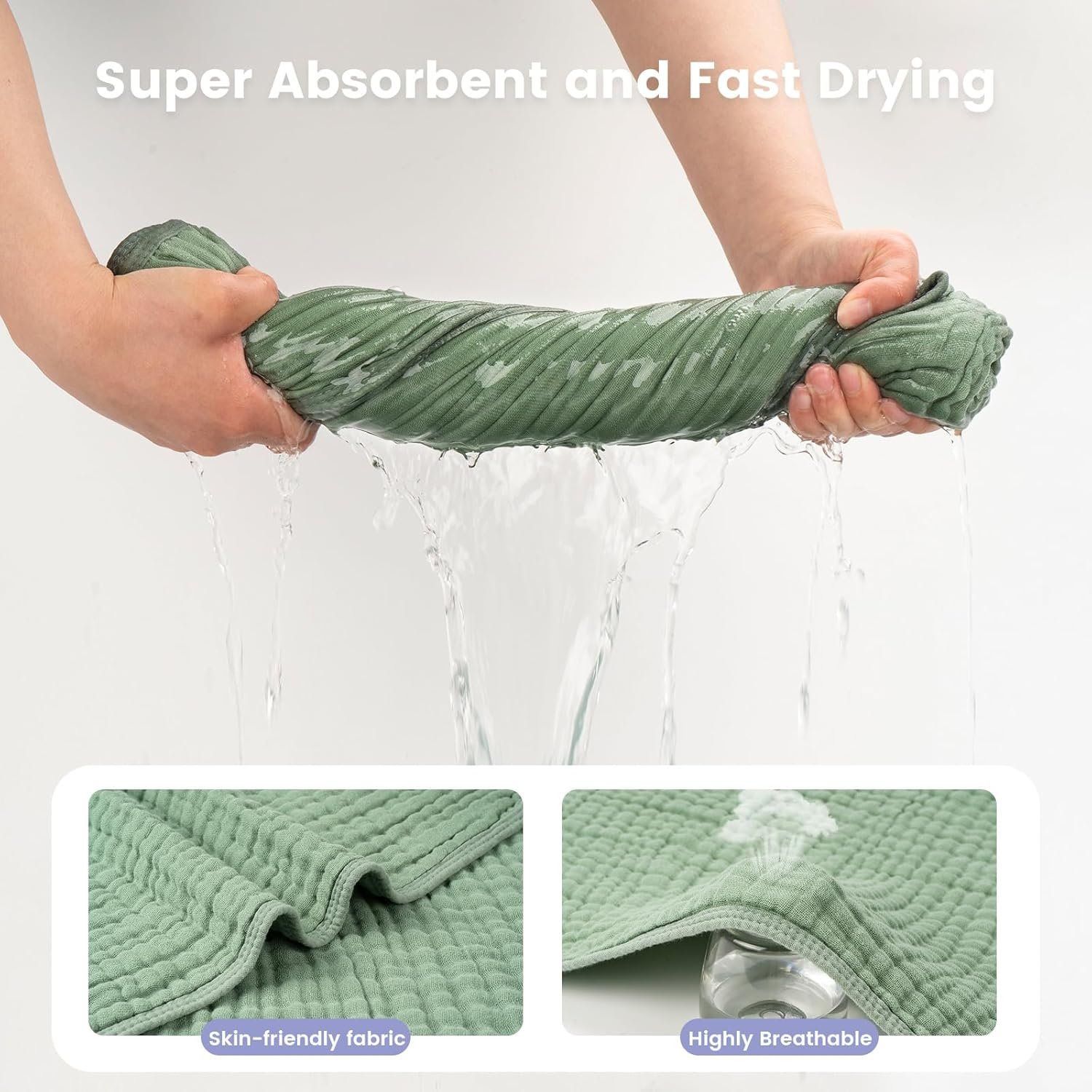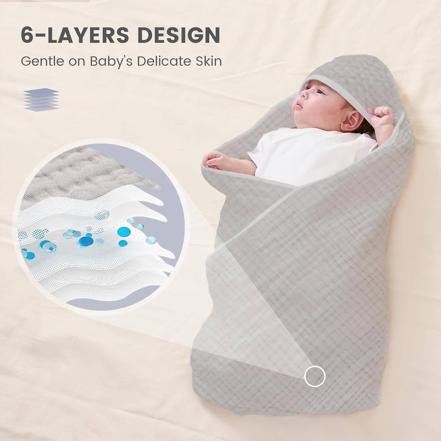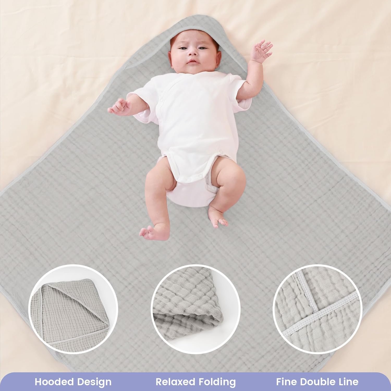 Soft & Absorbent 100% Muslin Cotton: Made from skin-friendly muslin cotton, these towels quickly absorb water while keeping your baby warm and cozy after bath time.
