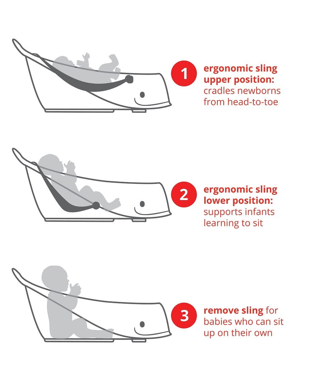 Grows with Your Baby: 3-stage design supports newborns (0–3 months), infants (3–6 months), and sitters (6+ months) up to 25 lbs.