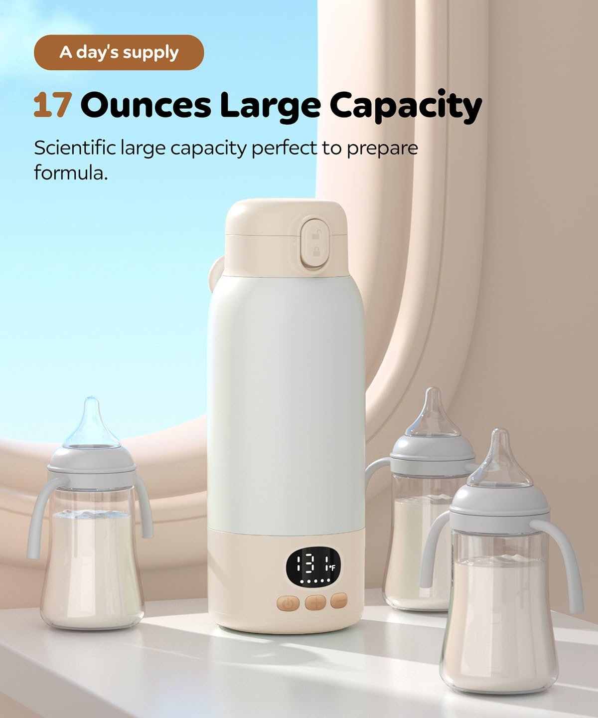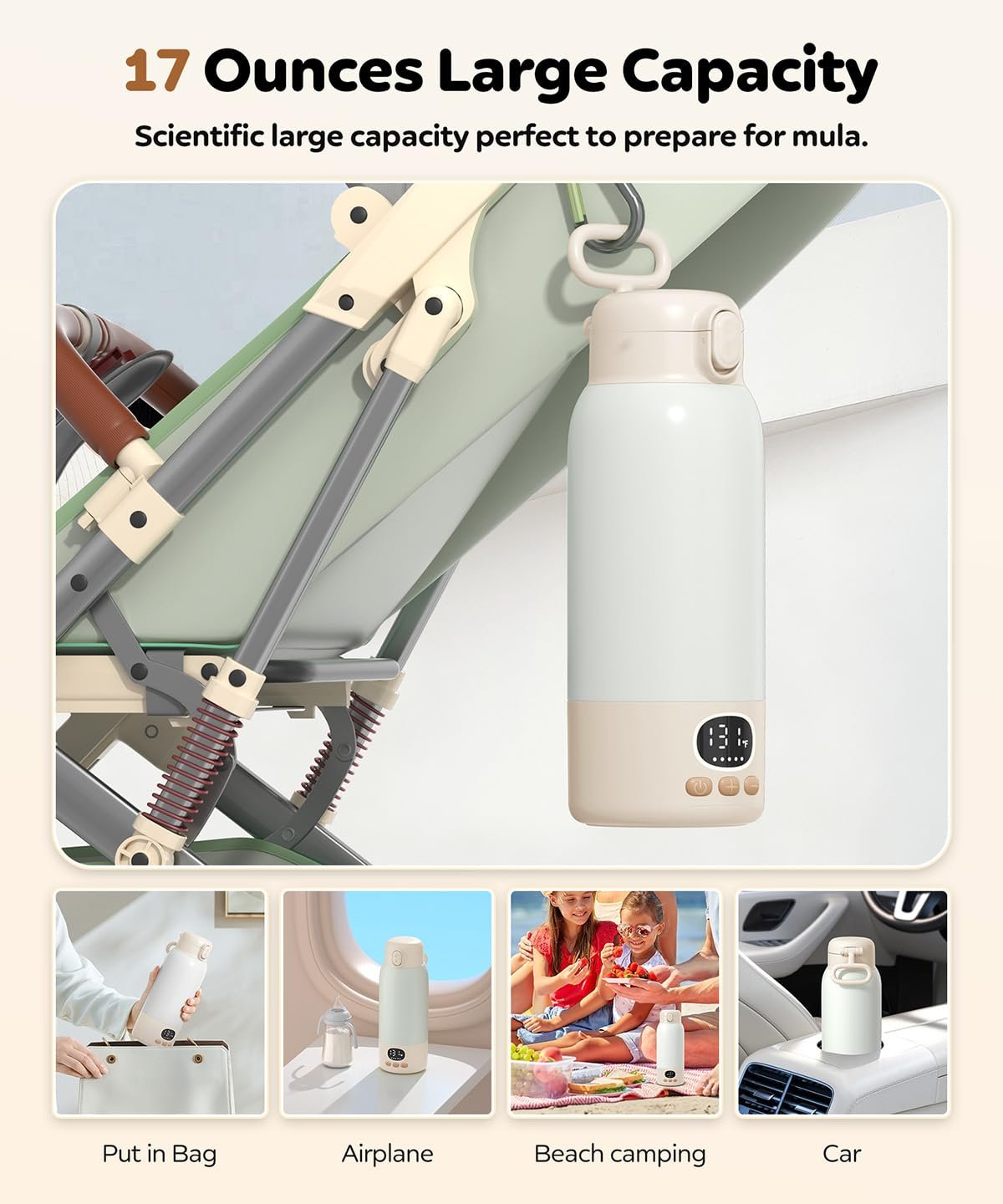 Large 17-Ounce Capacity: Perfect for warming breast milk, formula, or baby food—ideal for both daily use and travel.