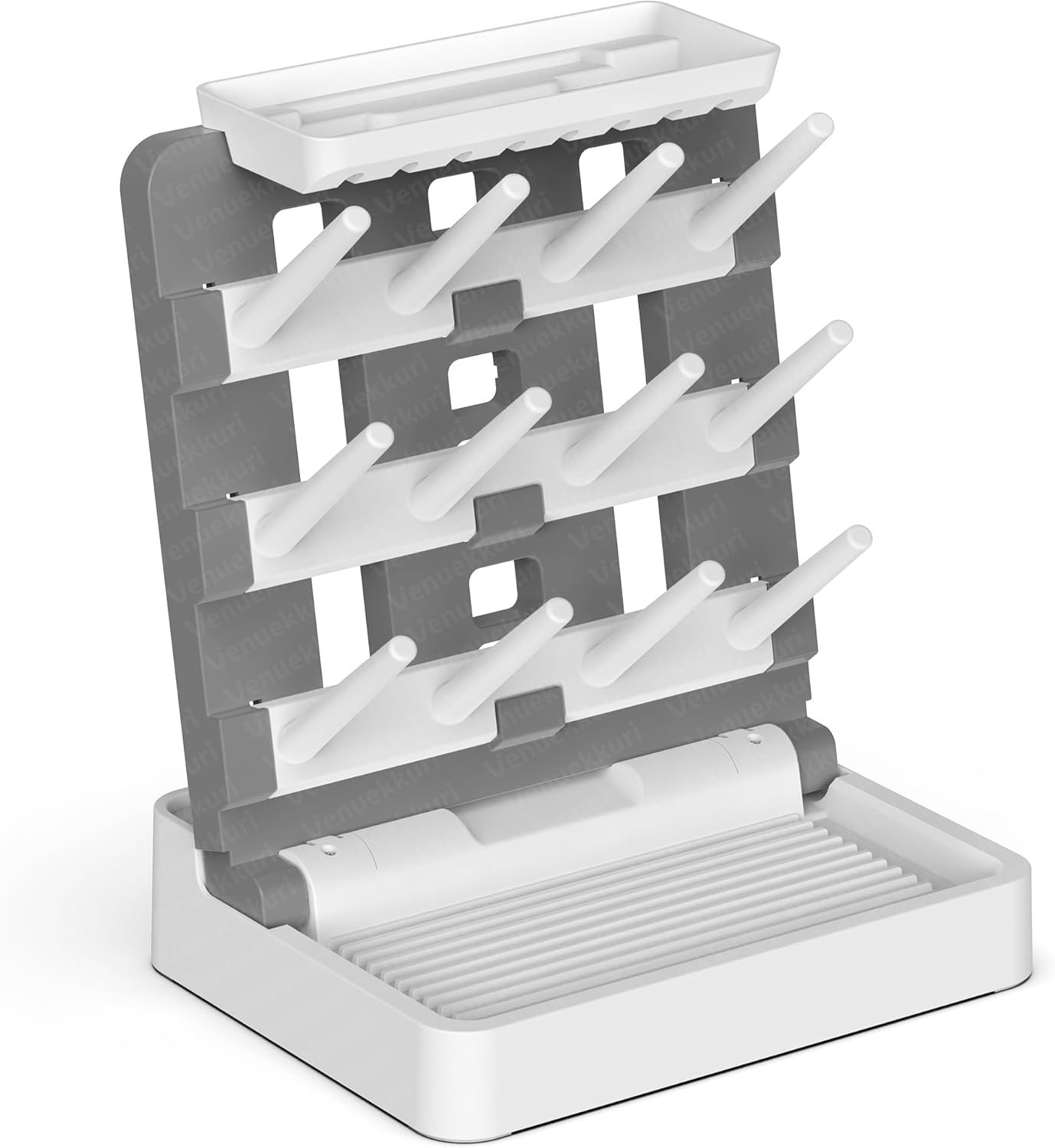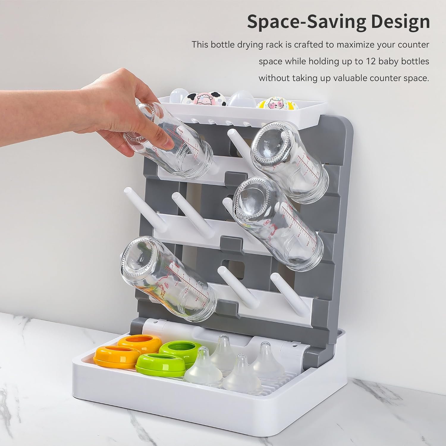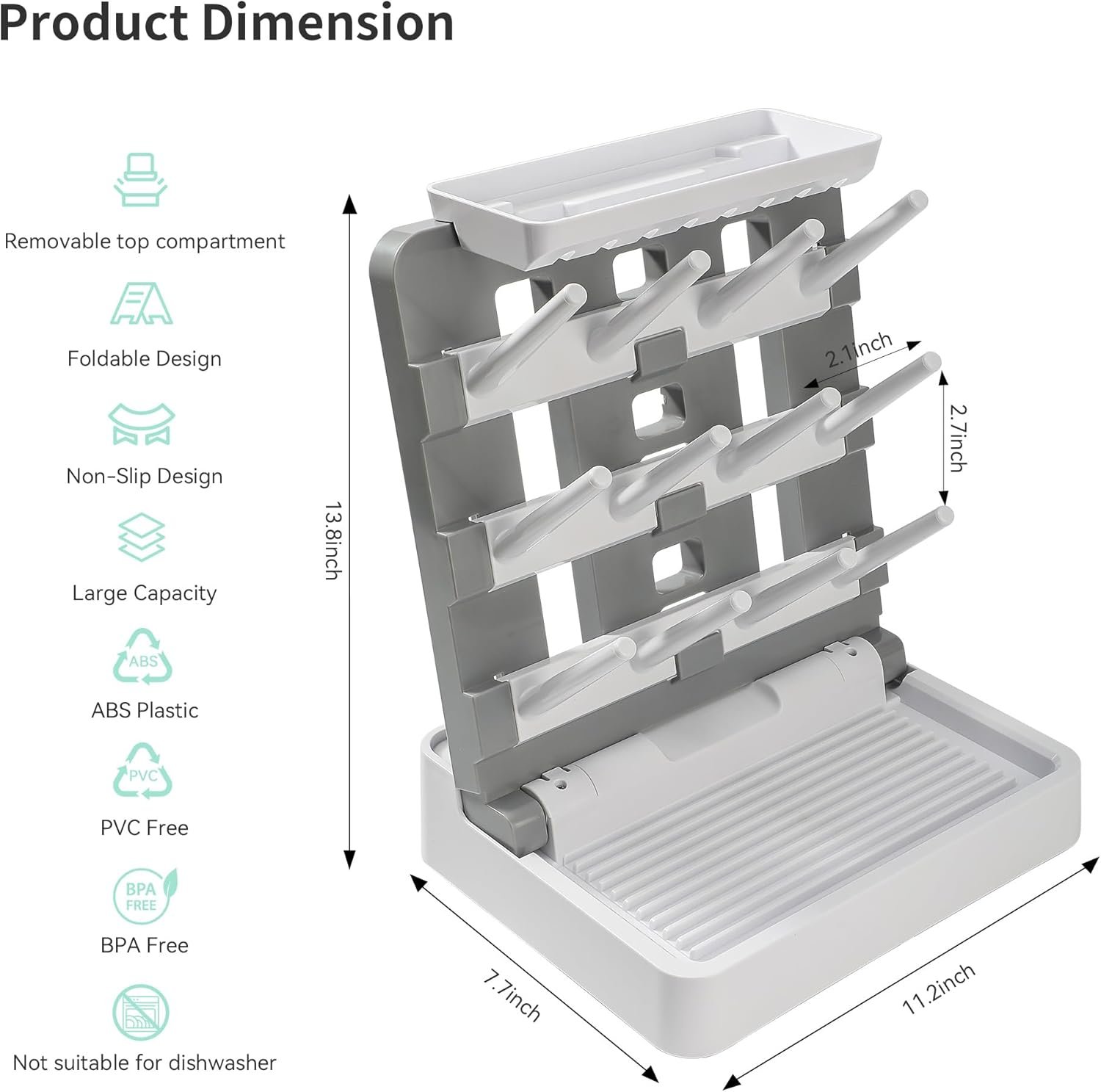• Space-Saving Vertical Design: Holds up to 12 bottles plus pacifiers, pump parts, and nipples in one compact, organized spot—perfect for countertops with limited space.